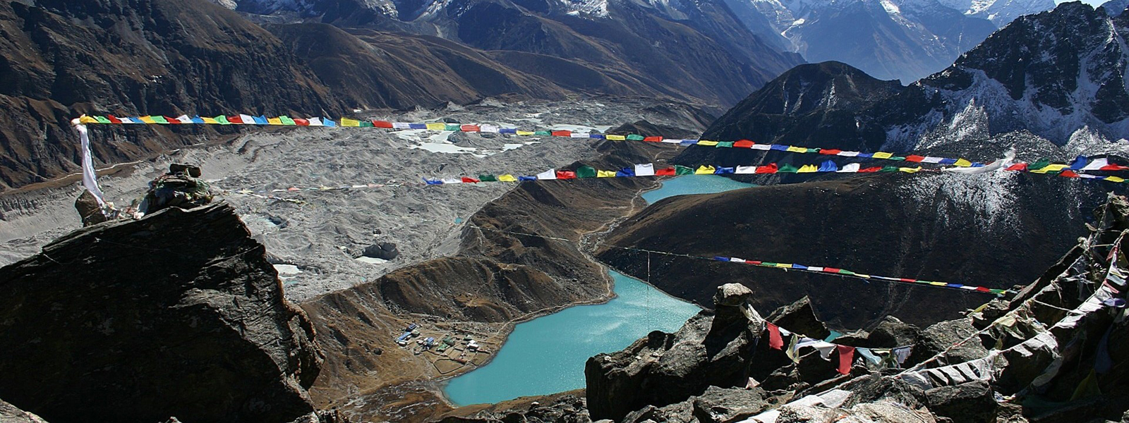From Gokyo valley and it been beautiful lakes walk leads beyond Ngozumba glaciers to cross over scenic Cho-la pass to reach on the foot of Mt. Everest at base camp hidden by mighty peaks of Nuptse and Lhotse with massive Khumbu glacier and ice-falls.